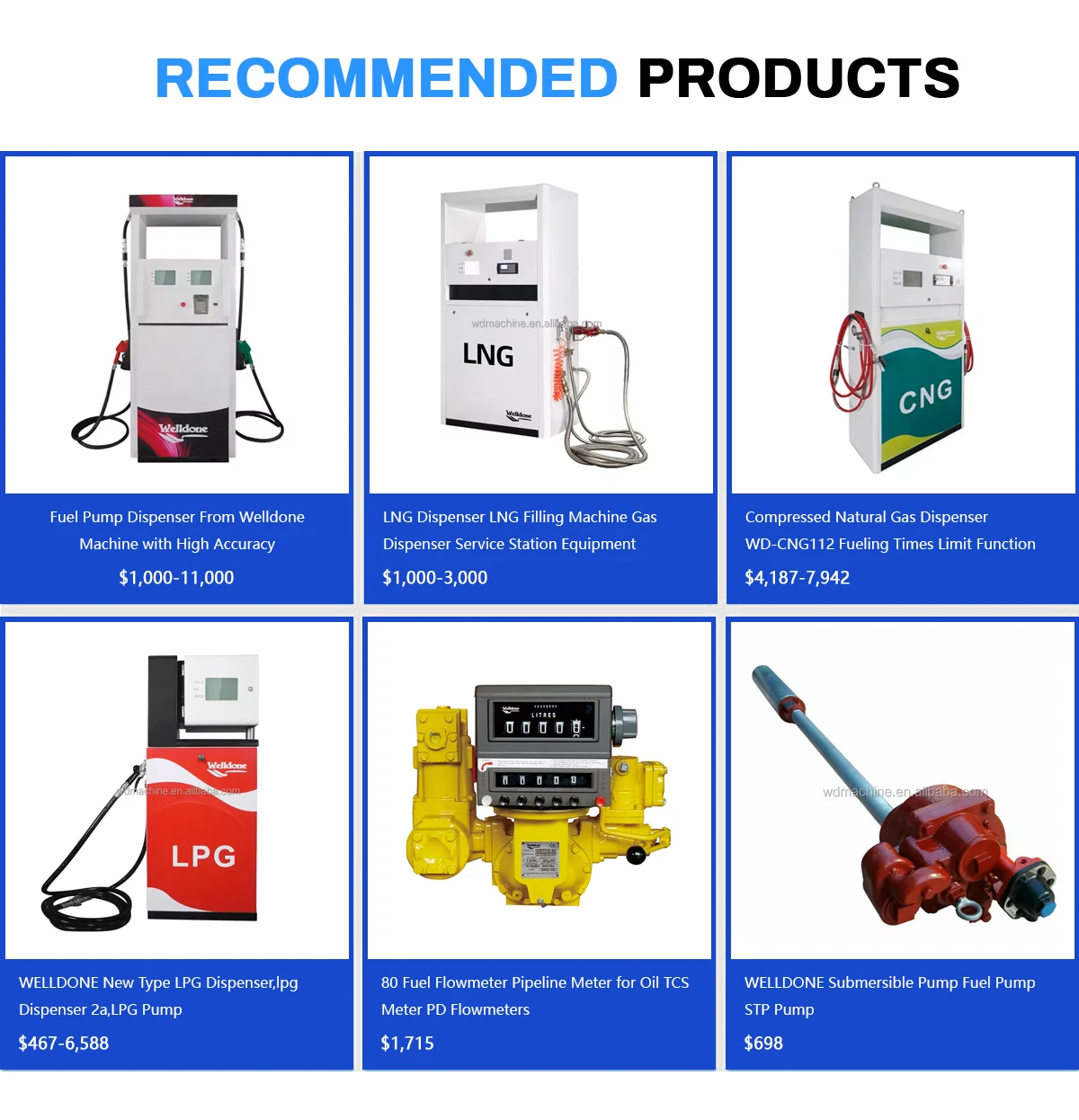 Ana ürünler:Yakıt dağıtıcı, LPG dağıtıcı, CNG dağıtıcı, LNG dağıtıcı, benzin istasyonu